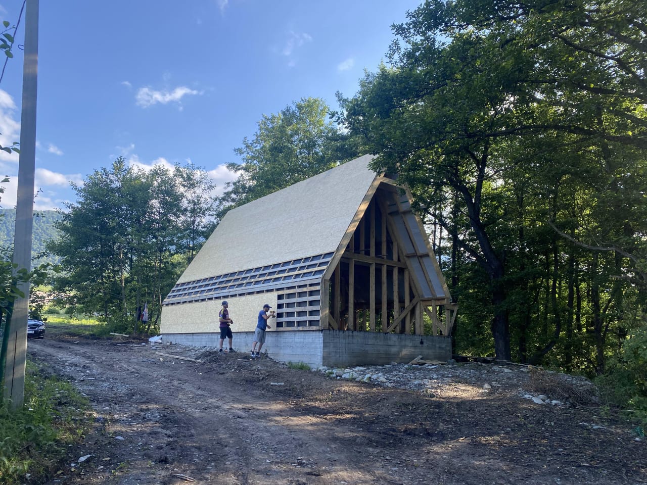 На этом этапе монтируется основная деревянная конструкция, включающая стены, колонны, балки и элементы кровли. Древесина предварительно обрабатывается для обеспечения прочности и долговечности.